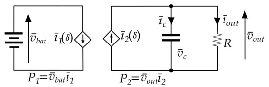 neglecting the power dissipation in the converter. Notice that the variables in Equation (1) represent the average values over a switching period of the correspondent signals. The power P δ , t can be computed by the average value of inductor current over a half switching period for symmetry conditions,