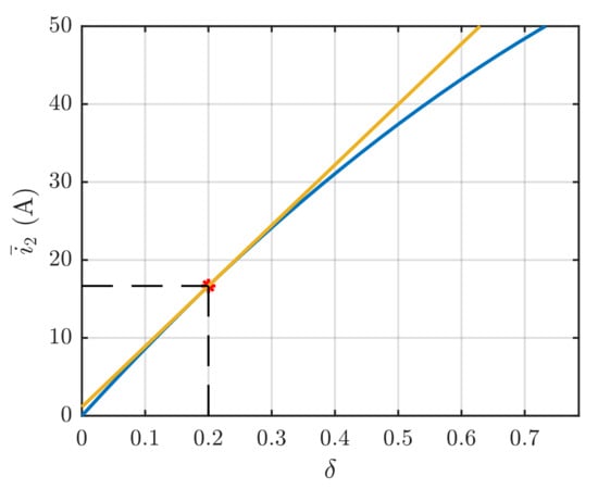 This paper proposes a digital technique that overcomes the approximations introduced by the inductor current linearization and the consequent use of the small-signal DAB model in the controller tuning process. The main idea is to change the system control variable from the PMW phase shift δ , see Figure 6, to the mean value of the output converter i ¯ 2 z , see Figure 7.