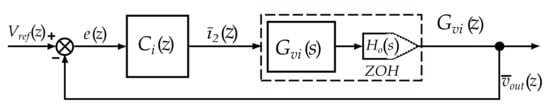 Equations (11) and (12) have been obtained by the continuous-time counterpart G v i s = v ¯ o u t s / i ¯ 2 s and the zero-order hold (ZOH) discretization method. In particular, the transfer function