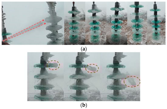 Since the 20th century, the icing problem has posed a danger to the security of transmission line operations. Icing significantly downgrades transmission lines’ mechanical and electrical performance, and threatens the power grid’s stable operation [1,2]. The icing of wires and insulators has the most significant impact on the power grid. After the insulator is coated with ice, its electrical performance declines sharply. Ice flashover may lead to tripping in severe cases and interrupt the power supply [3,4,5,6,7].