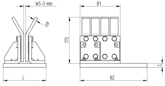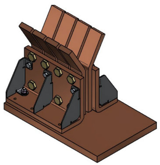 The manufacturer of the high-current direct contact we have selected is Ampac (Figure 1). This company produces many contacts with different values of current carrying capacity. The high-current contact we chose for analysis meets all the requirements for optimal power transmission. The elements conducting the electric current are made of copper (main structure) and BeAg (reinforcement plates). The system works without compression springs, which means that its construction is simple and the elementary design of the contact ensures low maintenance costs.