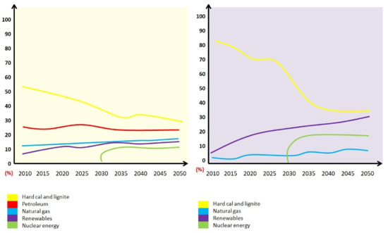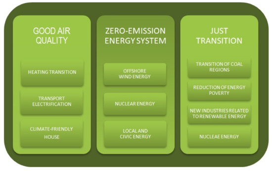 The European Green Deal [13] has become desirable because it hopes for the unification of the implementation of climate neutrality with the possibility of consistency with all agreements. The low-emission energy transformation envisaged in PEP2040 aims to implement major changes for the entire economy that would ensure energy security, point to the principles of cost allocation and secure vulnerable social groups [14,15].