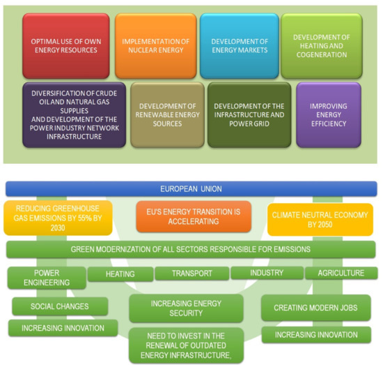 The transformation also requires the increased use of renewable energy technologies in heat generation and the increased use of alternative fuels in transport through the development of electromobility and hydro-mobility [25,26].