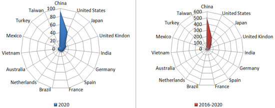 The charts present the investments in renewable energy sources both between 2016–2020 and in 2020 separately (Figure 8). When analyzing the transactions of funds and comparing the year 2020 to the period 2016–2020, we noted that investments were proportional and aligned with the predictions that were based on the previous history of financial investments in RESs in terms of the scale of change (total).