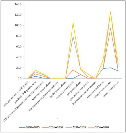 By 2040, more than half of the installed capacity will be zero-emission sources. It is important to implement offshore wind energy in the Polish power system and commission a nuclear power plant [24]. These are two new strategic areas and industries that will be built in Poland. It is an opportunity for the development of the domestic industry, specialized personnel competences, new jobs and added value for the national economy. Parallel to the large-scale energy sector, distributed and civic energy will also develop based on local capital.