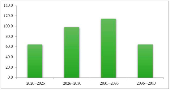 The forecast of investment outlays for the expansion of production capacities indicates almost the same predicted allocation in the years 2020–2025 and 2036–2040, during which it is PLN 64.5 million and around PLN 64.1 million, respectively. In turn, in the years 2026–2030, it is forecasted to be PLN 98.3 million and PLN 16.2 million more in 2031–2035. The outlays are predicted to be the largest in the years 2031–2035 and the lowest in 2020–2025 [77].