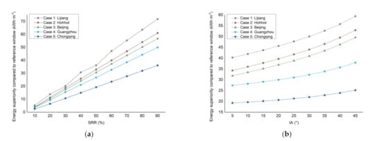 Energy superiority compared to reference window: (a) Flat roof; (b) Sloped roof.