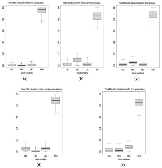 where is the primary effect of the j-th input variable and is the total effect of the j-th input variable. The four input variables are , , , and .