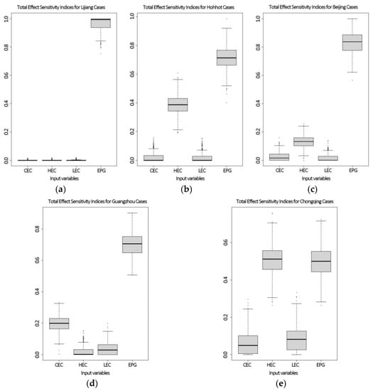 For these cases, the coefficient of performance for cooling () is assumed to be 3.5, and the equivalent heating system efficiency () is assumed to be 2.18 for severe and cold zones and 2.29 for other zones due to the variation in heating systems, taking into account the geographical differences in China.