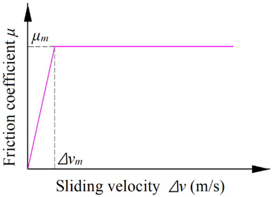 Figure 3 shows the simplified traction model in which the friction coefficient of the contact between rolling elements and raceways depends only on the sliding velocity. The friction coefficient increases linearly with the sliding velocity and remains unchanged (i.e., μm) beyond a certain value of sliding velocity (i.e., Δvm). This traction model was used by many researchers to investigate the dynamic characteristics of rolling-element bearing [24,35,38,39]. It needs to be noted that the friction coefficient used in this model is independent of velocity, pressure, or temperature. However, as affirmed by Guta [35], this relationship between the friction and sliding velocity is justified for a solid lubricant, as considered in this study.