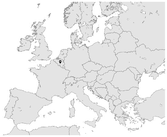 The house is located in a suburban area of Namur (the capital city of Wallonia), in the city of Erpent in the southern part of Belgium (50° North) (see Figure 3) and is exposed to a temperate oceanic climate (Cfb zone according to the Köppen–Geiger climate classification system []). Section 2.3 presents an overview of the current and potential future characteristics of this climate.