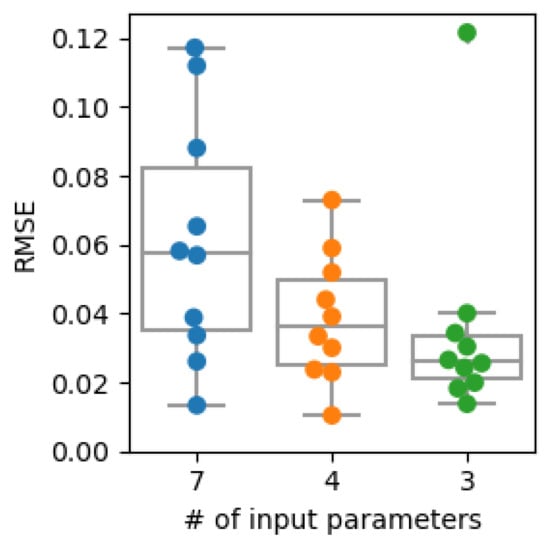 The significance of the parameters was determined by their effect on the accuracy of the mathematical model. If a mathematical model based on a smaller number of input parameters achieves similar accuracy, i.e., there is no statistically significant difference at the 95% confidence level, this means that the omitted input parameters are insignificant for the model. Differences between the models in terms of accuracy were compared using the Mann–Whitney U Test, assuming a significance level of