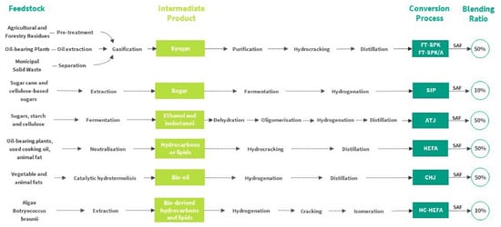 - Commercial Aviation Alternative Fuels Initiative. Two New Alternative Jet Fuel Production Pathways Approved. Available online: https://www.caafi.org/news/NewsItem.aspx?id=10502 (accessed on 20 January 2022).