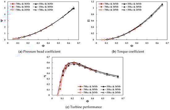 The dynamic performance of the turbine was demonstrated as non-dimensional variables as follows: