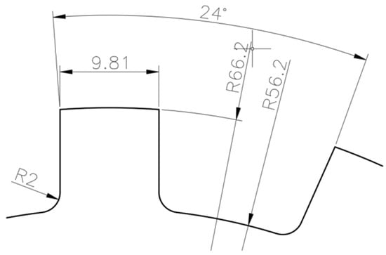 | No. | Rotor Tooth Dimensions | ε [%] | Rotor Tooth Dimensions | τ [%] | ||