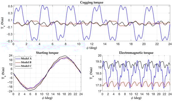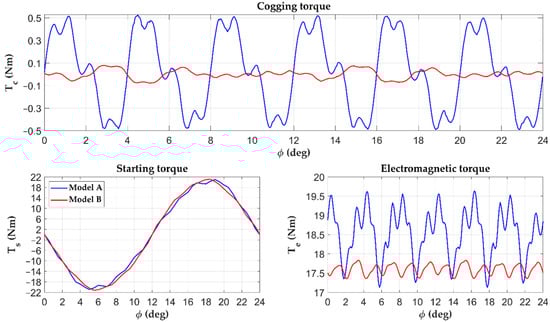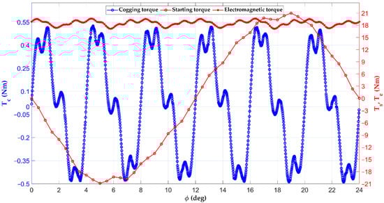 - Minimization of the maximum value of the cogging torque and obtaining a smooth curve of it as a function of the rotor position (i.e., minimization of the derivative value dTc/dϕ);
