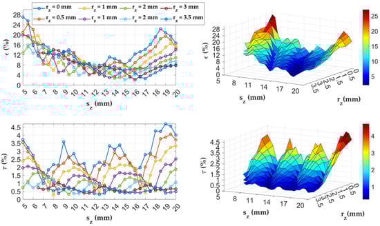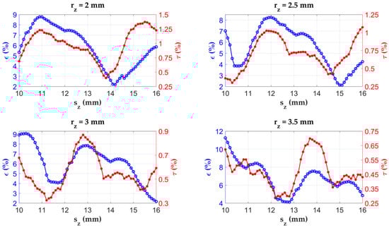 | sz [mm] | rz [mm] | δ [mm] | Max | Max | Avg | |||