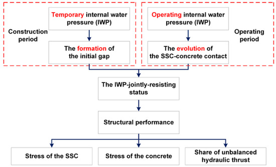 To better illustrate the structure of this study, a flowchart is shown in Figure 2. This study focuses on the IWP-jointly-resisting status of the SCS under different temporary IWPs, and the effect of temporary IWP is assessed through several typical aspects of structural performance.