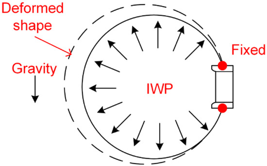 This result may be explained by the irregular expansion mode of the SSC, as is shown in Figure 8. During pressurization, the stay ring remains fixed, while SSC expands radially under temporary IWP. Accordingly, the maximum initial gapping clearance always appears at the left waist of each cross section, and its value is obviously larger than that at the top and bottom.