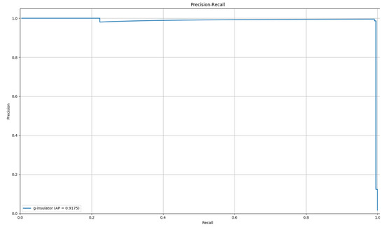 Figure 10 shows the P-R (Precision-Recall) curve of the proposed regional target detection model for insulator detection. The model has a strong insulator detection ability, and the AP (Average Precision) of insulator detection is as high as 0.9175.