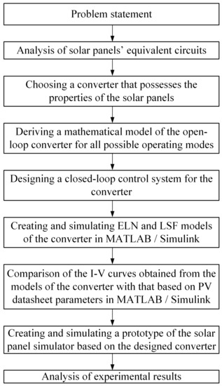 4]. This research considers the reduction in buildings’ energy consumption based on the concept of an all-electric nearly Zero-Energy Bulding (nZEB). The researchers actively implement mathematical modeling and simulation of the sources and emphasize that ‘a building’s performance during operation deviates from simulations’. Here, the term ‘simulations’ relates to exploring the performance of a power supply in a software environment. In the majority of cases, engineers have at their disposal operating power plants. Thus, there arises an issue of how to evaluate the introduction of a new solar panel into an existing operating power plant right on the spot. In this sense, both mathematical and simulation models are all-embracing tools of designing both standalone solar sources and their combination with diesel and wind units. Unfortunately, developing a model of the entire power plant takes a huge amount of time and cost. This gives us grounds to overcome the issue by developing a line of embeddable solar panel simulators that generate approximate I-V curves of the panels in all possible operating modes. Thus, the suggested simulators can be employed both in the designing stage and during the operation of energy-efficient power supplies.