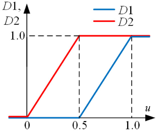 Analyzing sets of Equations (2)–(4) and adding the limiting condition for the output voltage that must be stabilized at level