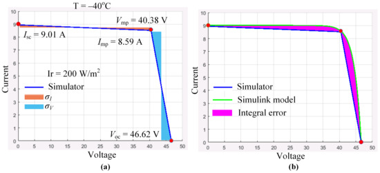 has been found as the difference of areas of a datasheet I-V curve and a simulated one, as illustrated in