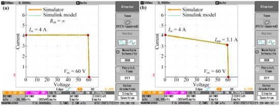 Figure 3 indicates that the two solar PV panel models correspond to each other. Thus, we take the Simulink spice model with the datasheet parameters as a basis of our subsequent research.