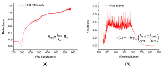 (a) Silver-Plated Brass Relative Reflectivity, (b) N719 optical absorption.