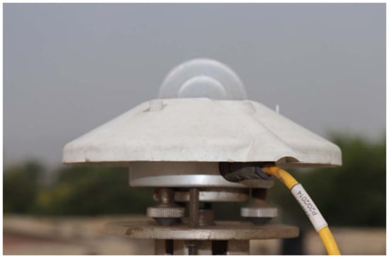 Rotating shadowband irradiometer (RSI) is used to measure global horizontal irradiance (GHI), direct normal irradiance (DNI), and diffuse horizontal irradiance (DHI). RSI installed at UET Peshawar came from Concentrating Solar Power Services (CSPS) which is called CSPS Twin-RSI. It has two radiation detectors made from silicon located in the middle of a spherical shaped shadowband. The two radiations sensors called LI-200 came from LI-COR Inc. (Lincoln, NE, USA). When shadowband is below the sensor in rest position, the sensor measures GHI. Shadowband moves after some time and it comes in the path to block DNI. When DNI is blocked, the sensor measures DHI. When GHI and DHI both are known, DNI can easily be calculated. Figure 3 shows RSI installed at UET Peshawar. Specifications of CSPS Twin-RSI are given in Table 2.