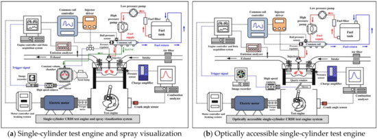 37]. Biodiesel, with its relatively higher density, can be expected to have longer spray tip penetration owing to this model. However, it is thought that the delayed SOI of biodiesel fuel, which has a greater viscosity and surface tension, leads to shorter spray length.