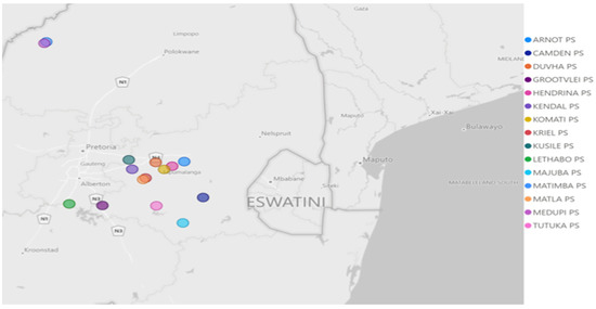 - ESKOM. Power station GPS Coordinates. Eskom. Available online: http://www.eskom.co.za/Whatweredoing/ElectricityGeneration/PowerStations/Pages/Power_Station_GPS_Coordinates.aspx (accessed on 6 November 2020).