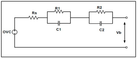 Battery equivalent circuit model, Reproduced from [31], MDPI Batteries: 2019.
