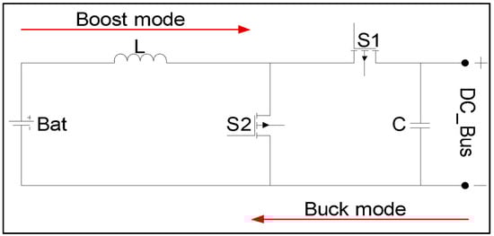 Here, in this section, the study discusses the design of the bidirectional DC-DC converters. The proposed bidirectional DC-DC buck-boost converter equivalent circuit is shown in Figure 3 as stated in [34].
