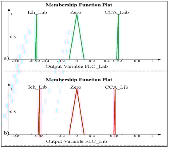 The membership function output variable of (a) CCCLAB and (b) CCCLIB.