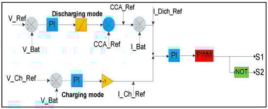 The buck mode operation of the batteries, charging current, and voltage is controlled and determined by the BMS. The bidirectional DC-DC buck-boost converter parameters are summarized in Table 1.