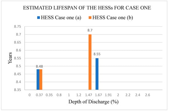 The proposed HESS is compared with a single 12 V–50 Ah LAB. A comparison is made based on CCA delivered by HESS and SLAB, as well as the minimum voltage, and SoC level of LAB in HESS with SLAB during CCA mode. The results show that the performance of LABs in terms of storage capacity is improved by 13.5%, while the LAB voltage range and SoC remain significantly higher compared with SLAB. The estimated lifespan of the proposed HESS for case one is 8.5 years compared with the estimated lifespan of the SLAB which is 5.1 years. The results clearly show that based on the fatigue cycle-count model, the LAB’s lifespan is significantly enhanced by 3.4 years. Although various method for battery life estimation exists, this study uses the fatigue cycle counting method to estimate the battery lifespan. This method may not be suitable for operation in such low micro-cycles. To validate the suitability of this method for operation in such micro-cycles, this study proposes to develop a prototype and include the calendar lifespan estimation in the future using tools such as python battery analysis modelling (PyBAM) or via the simulation of stationary energy storage (SimSES) for a clear comparison between fatigue and calendar lifespan estimation.