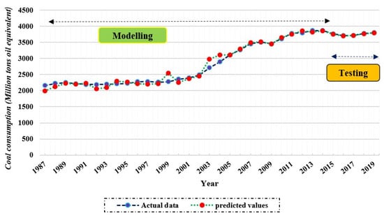 Coal is broadly distributed and the most abundant source of fossil energy in the world; in addition, it is an inexpensive and conventional source. From 2013 to 2016, the worldwide market for coal presented a three-year descending tendency in consumption of coal, which could be a probable sign of a reduction in demand for coal. Though there was a minor increase and recovery in 2017, that was anticipated to lead to other robust increases due to both demand and supply. The increasing electricity demand for power generation has resulted in the consumption of coal, demonstrating a global coal recovery. However, coal’s recognition as a key carbon emissions source attracts attention. Naturally, the consumption of coal is the volume of coal energy that society consumes. While a society consumes coal to reach other societies’ demands, consumption of coal is observed as a change from one production activity to another. The footprint of coal through regions and countries is defined as the embodied consumption of coal, which is calculated based on coal transfers and flows. Analyzing and measuring the footprint of coal could lead to new views for exploring transferred coal via trade, consumption of coal in a domestic country, and flows from regions to other zones. Due to its broad availability and easy transportation and storage, coal has been an important source of energy for India, China, Germany, United States, Poland, South Africa, and emerging non-OECD countries, mainly countries situated in Asia, where consumption of coal is estimated to increase by around 90% in 2040 [2]. Additionally, the quickly fluctuating prices of natural gas and oil and the unstable politico-social market have permitted coal to become an indispensable and fundamental source of fuel in the steel, power, cement, and iron industries. However, coal creation is considerably more carbon-demanding than substitutions. The complex relation among demographics, economic growth, and consumption of energy (mainly in countries that have coal-demanding industries and high dependence on fossil fuels), with the increased greenhouse gases amount in the atmosphere (mostly associated with the combustion of natural gas, oil, and coal), have elevated serious worries in the scientific community about the prospect of coal. Therefore, besides environmental studies of coal [3,4], several investigations have concentrated on the application and development of predicting methods to forecast the economic views of coal, production, future reserves’ levels, consumption, and its effect on the environment. In the coal sector, lasting prediction models are of major significance since they propose information on market imbalances, investment strategies, future trade, and permit decision-makers to forecast and evaluate the potential influence of changes in government policy [1,5,6]. To manage the energy supplement effectively, it is necessary to understand the factors that affect the amount of energy required in a particular region. Due to the hazy and complicated nature of the energy demand procedure and the factors that influence it, efficient instruments for effective energy use are needed. As a result, it is necessary to identify effective instruments for precisely determining energy demands.