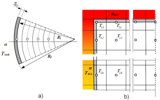 In this paper, an explicit formulation has been used to solve Equation (11). The discretization of boundary cells must take into account the presence of the encapsulating layer, as presented in Equation (15) where the boundary flux, computed in Equation (16), takes into account relations reported in Equations (14) and (12). The mismatch between the PCM bar discretization and the axial discretization of the water tank has been treated as suggested by Padovan et al. [