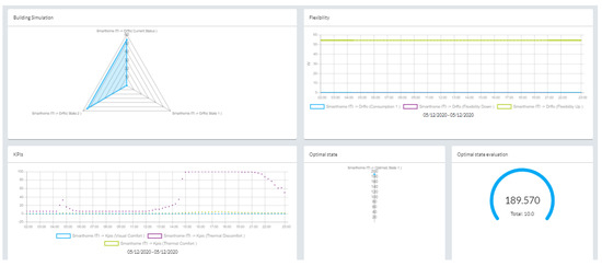 - “Shift demand among consumers and optimization of energy trading”. The P-n-H ICT system properly shifts the demand among consumers at different times and optimizes energy trade between consumers, storage systems, and both the thermal and electrical grid. Additionally, the district energy management system predicts and monitors both energy generation from integrated neighborhood systems and user consumption while providing information to end users and allowing them to participate in the management of their energy demand. As a result, the OEMS collaborate with the Demand Response Flexibility Forecasting and Optimization (DRFFO) module, which is responsible for calculating and forecasting, based on real-time data, the available flexibility at a building and aggregated district scale. Such functionality allows the respective building operators (e.g., energy aggregators, homeowners) to actively adjust the level of their compliance and, consequently, their benefits, with the demand response strategies (demand shifting and shaping) implied by the Distribution System Operators (DSOs) in different power supply domains. Moreover, within the P-n-H cloud ICT ecosystem, an auxiliary, yet able to provide quite informative situation insights, user visualization platform grants different levels of access to different users (occupants, building operators, DSOs, etc.), allowing simple actions/strategies to be selected by them.