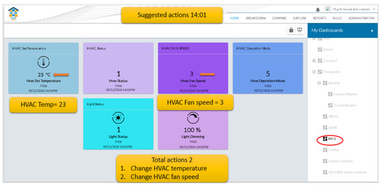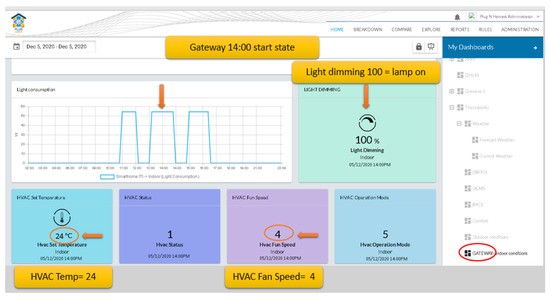 | 4 | Check next quarter indoor conditions | current | Light dimming = 100 %, Light consumption = 54 W, HVAC set Temp = 23 , VAC mode = 5 , VAC fan speed = 3 | successful |