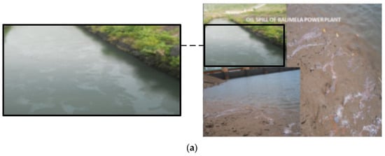 The oil droplets and mist expelled may reach the leakage collection well and pollute the power plant’s water source [56]. In addition, some of the oil mist and droplets will inevitably fall on the top cover and be discharged downstream together with water leakage, polluting the water quality and affecting the ecological environment of the downstream rivers [43,57,58]. For instance, the leakage event of lubricating oil VG 46 from Balimela Hydropower Station seriously polluted the reservoir, affecting plankton and fish production. It is shown in Figure 5a [25].
