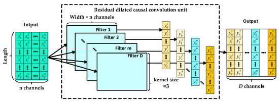 The fundamental core structure of the RDCCU is the dilated causal convolution [50], which is composed of causal convolution and dilated convolution [51]. The structure of the dilated causal convolution is shown in Figure 5.