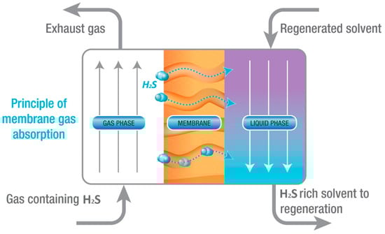 An alternative hybrid technology that combines the advantages of the membrane with that of absorption technology is Membrane Gas Absorption (MGA), i.e., absorption in membrane contactors instead of packed columns. This is a very promising new technology, with interesting advantages and further developmental potential, which has been increasingly studied in the last few years, especially for CO2 capture applications [32]. Moreover, although most of the above-mentioned technologies are more mature and have been discussed several times in the literature. On the other hand, the review articles about MGA technologies for H2S removal are limited. For these reasons, although this does not necessarily imply that it is the best available technology, it has been selected for more detailed analysis in the framework of this work.