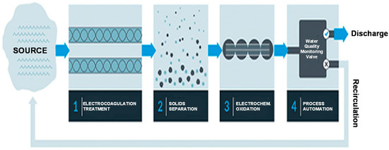 - Moussa, D.T.; El-Naas, M.H.; Nasser, M.; Al-Marri, M.J. A comprehensive review of electrocoagulation for water treatment: Potentials and challenges. J. Environ. Manag. 2017, 186, 24–41. [Google Scholar] [CrossRef] [PubMed]