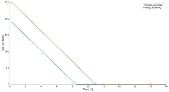 Although for each assembly positions are measured separately, the simulations used average dropping speed of 21 after about 0.5 s acceleration period. Assembly position time evolution is shown in Figure 5.