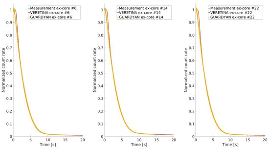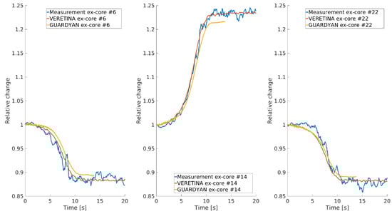 Comparison of ex-core detector signals to GUARDYAN and VERETINA results, linear scale.