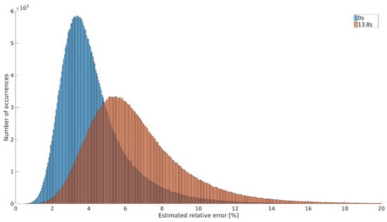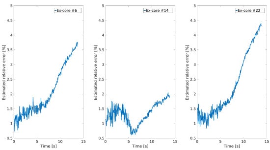 At the beginning relative errors are in the range of a few percent, generally being lower than 10% even at outer and topmost nodes averaging to 4.52% for all nodes, detailed results are visualised in Figure 13. Similarly to the ex-core detector signal time evolution, variances increase with time, at the end of the simulation (13.8 s) relative errors reach the average of 8.16%, the corresponding spatial distributions are shown in Figure 14.