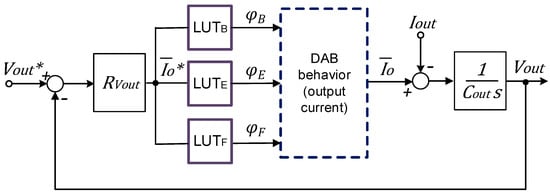 The proposed control approach (which involves an inner open-loop current control embedded in the closed-loop voltage control) can be generalized to be extended to any other modulation method. The schematic in Figure 7 shows a possible arrangement using Look Up Tables (LUTs) to obtain the three phase-shift values based on the desired output current. Instead of LUTs, of course, any other function could be used, e.g., analytical or empirical, even considering more than one input variable (e.g., selection could be based on input or output voltage values).