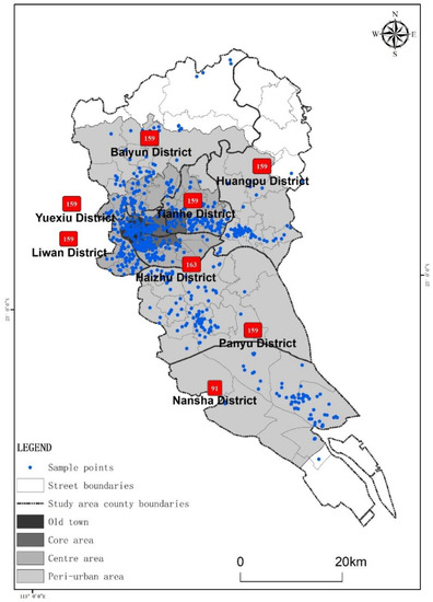 - Li, S.-m.; Hou, Q.; Chen, S.; Zhou, C. Work, home, and market: The social transformation of housing space in Guangzhou, China. Urban Geogr. 2010, 31, 434–452. [Google Scholar] [CrossRef]
